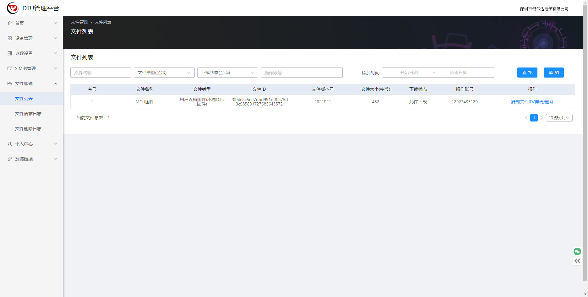 DTU平台支持文件管理,方便客户用于MCU固件升级,文件下发等功能